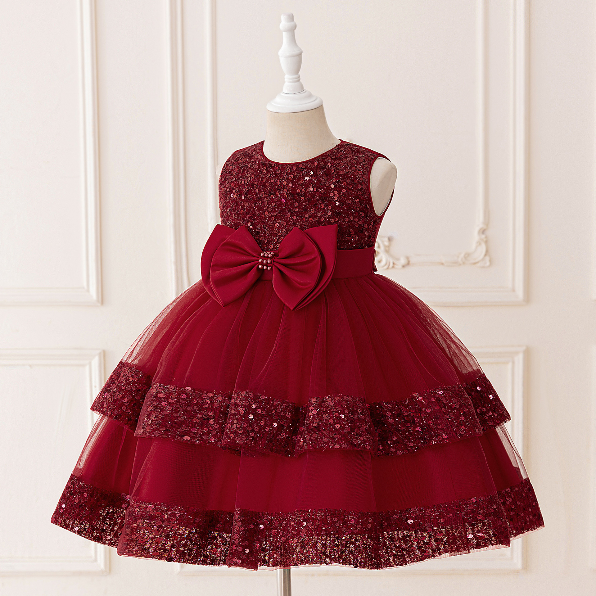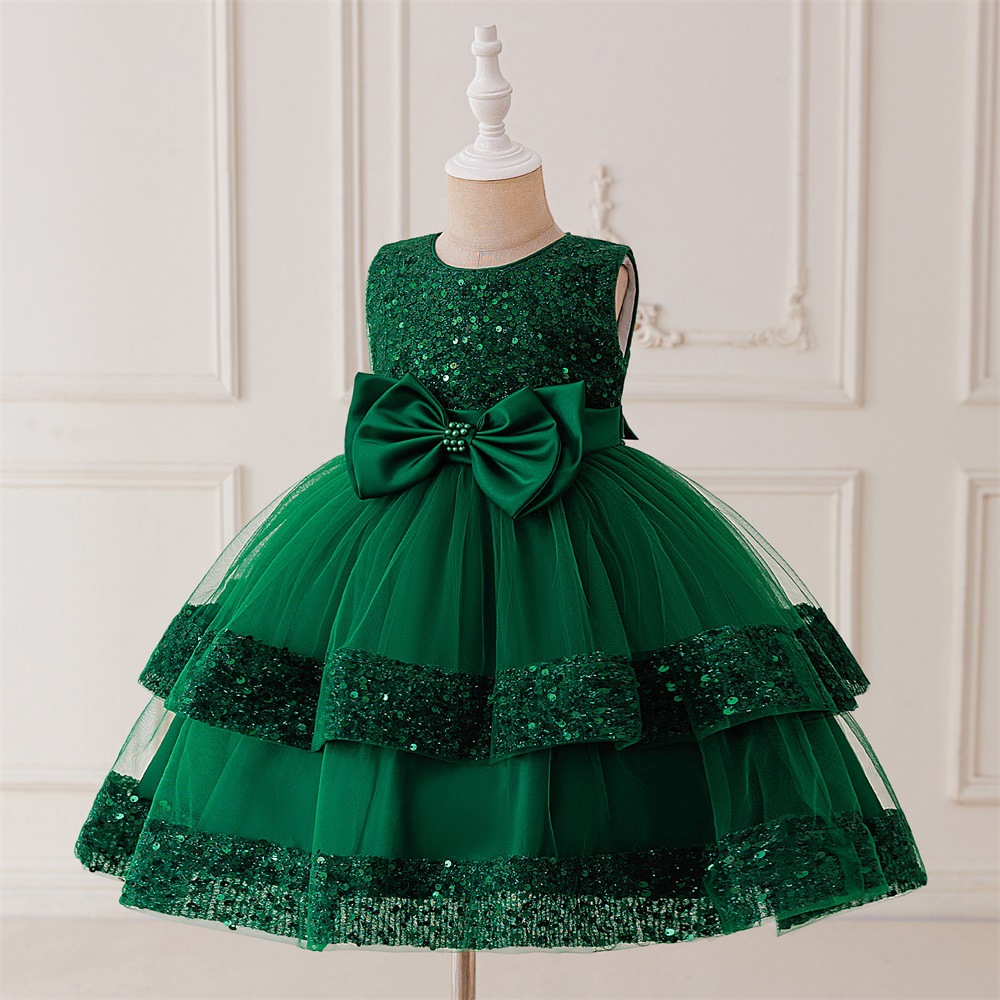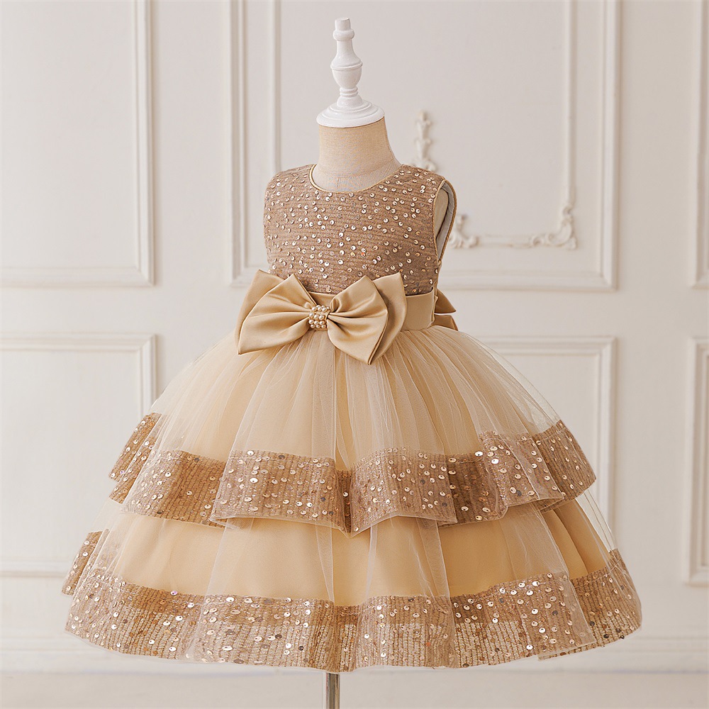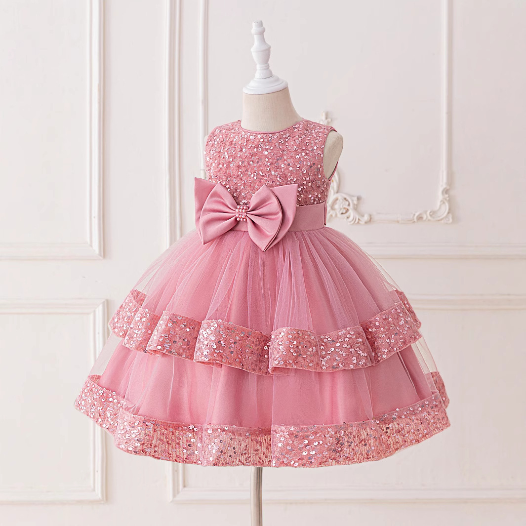 This sequin girls’ dress features a large bow detail at the waist, adding a touch of playful elegance. The bow not only elevates the overall design but also offers a unique visual accent that makes the dress memorable. Whether paired with matching accessories or worn simply for its beauty, the bow makes this dress a wardrobe highlight.
